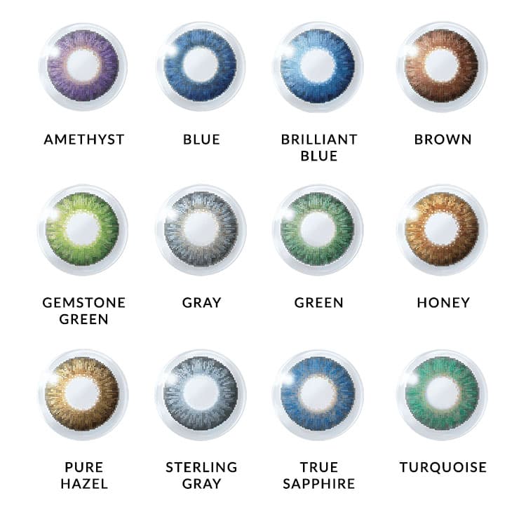 Monthly disposable silicone hydrogel contact lenses that offer beauty and comfort with 12 different colour options.